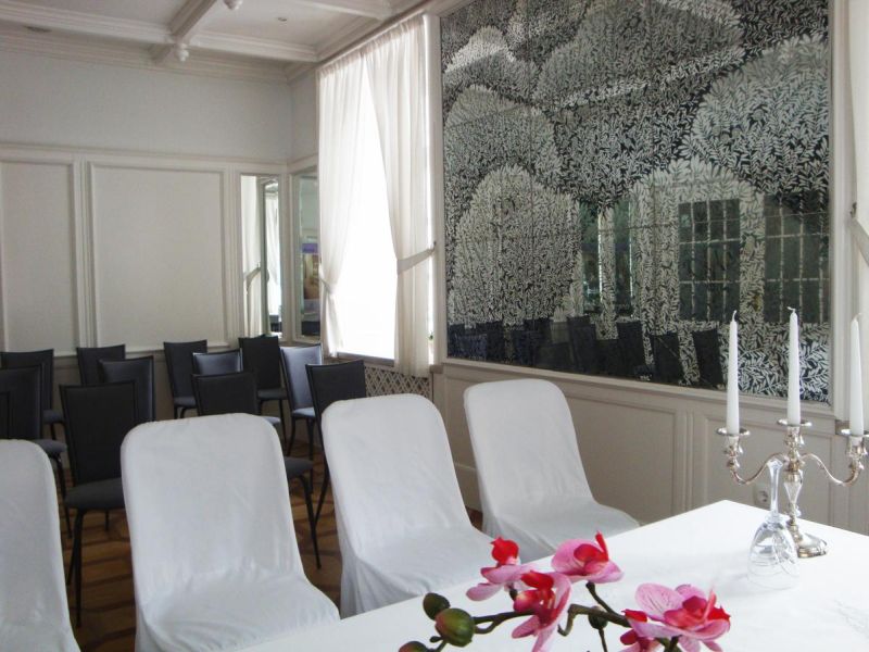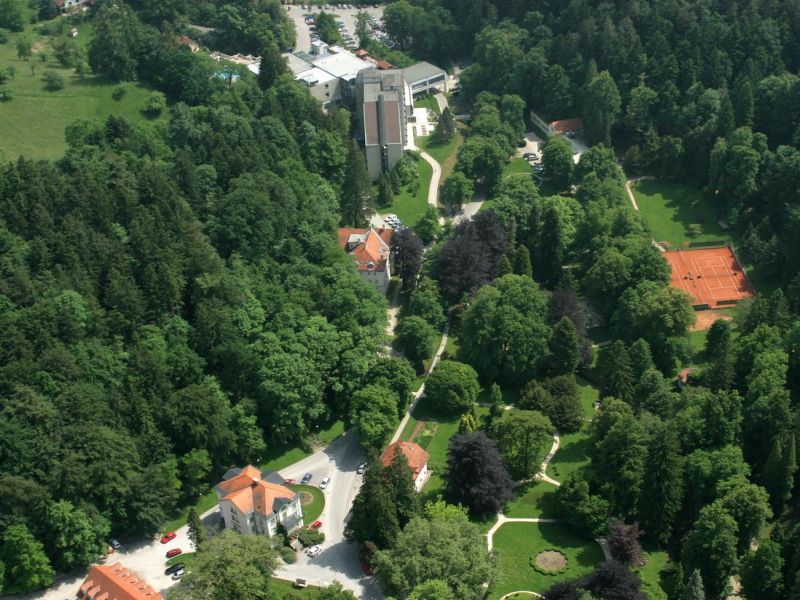 К услугам гостей номера, оформленные в изысканном стиле и оборудованные мебелью из натуральных материалов. Из окон номеров открывается романтический лесной пейзаж. Таже - зал для бракосочетаний и чудесный винный погреб с широким ассортиментом словенских вин и местных деликатесов.