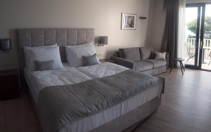 К пляжу ведёт пологая дорога (800 м), в летний сезон отель предоставляет трансфер на пляж.